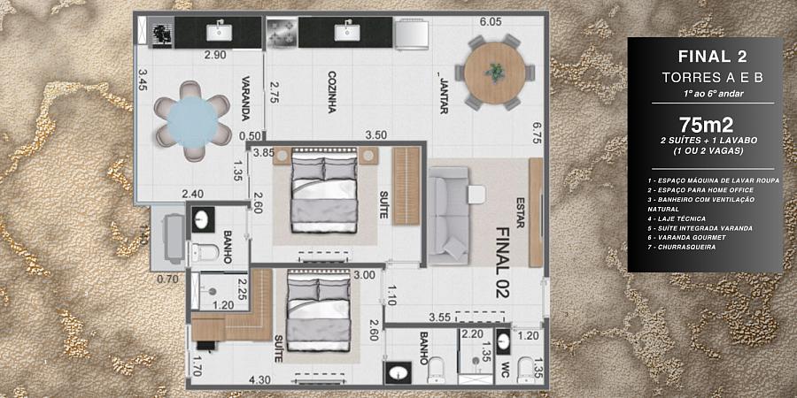 • Plantas Variadas: Apartamentos de 75,89 m² a 84,54 m².