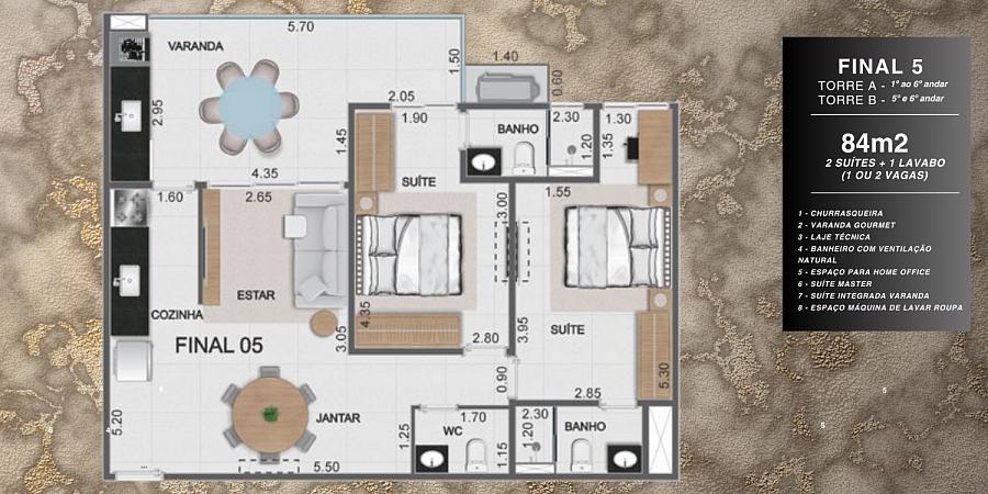 • Varanda Gourmet com Churrasqueira em Todas as Unidades.