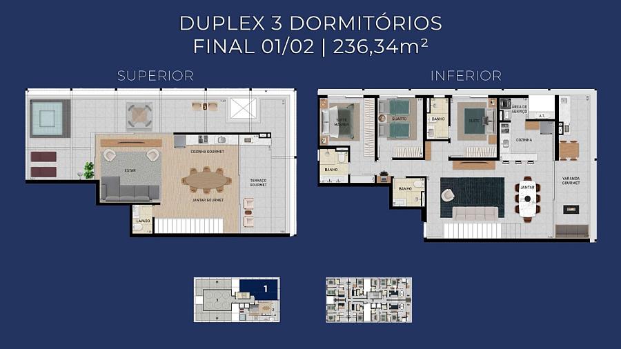 E essa unidade de 236m² Duplex foi projetada para oferecer conforto e sofisticação, com: