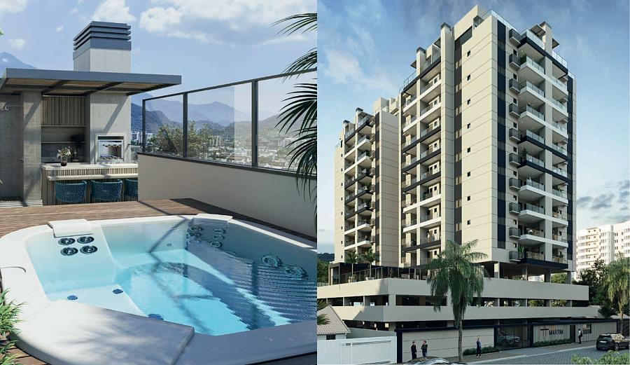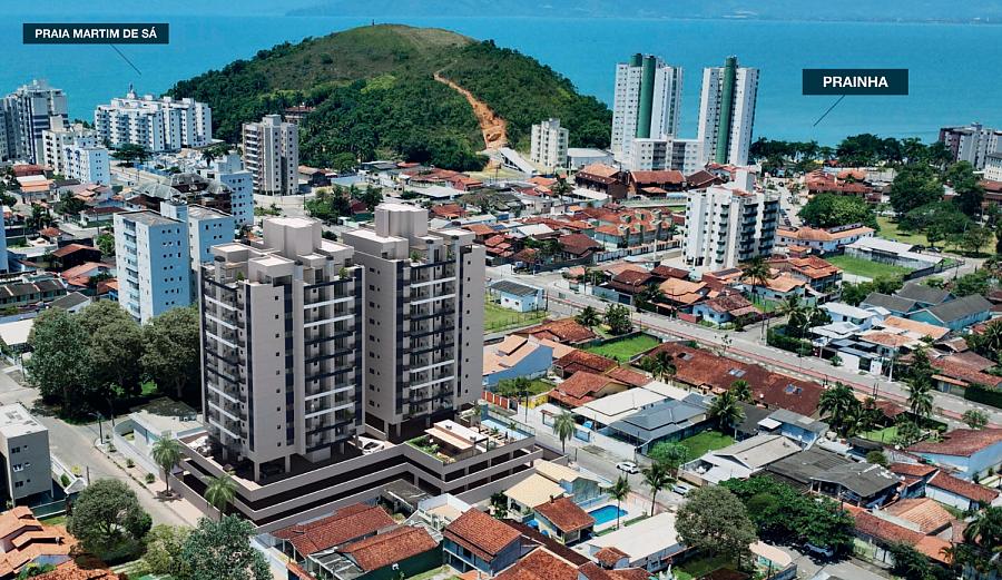 Cobertura duplex de 150m² localizada a apenas 400 metros da Praia Martim de Sá, famosa por suas águas cristalinas, areias claras e ambiente agradável, ideal para lazer e descanso com infraestrutura completa ao redor.