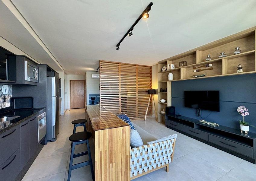 Esta unidade de 53m², 100% mobiliada (porteira fechada) permite entrada imediata em operação para locação por temporada, sem necessidade de investimento adicional. A vista para o mar e para as marinas cria um diferencial competitivo forte, elevando diária média, taxa de ocupação e recorrência de hóspedes.