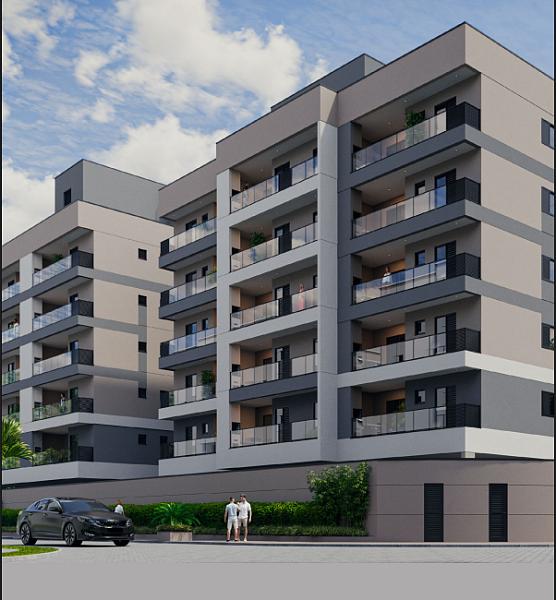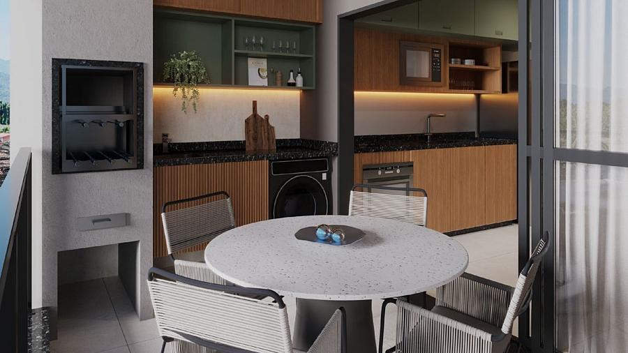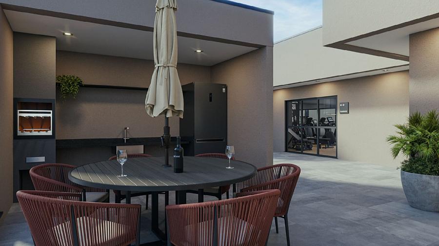 O Alpha Side é composto por duas torres com design contemporâneo e 65 apartamentos de 45m² a 70m², todos com varanda gourmet e churrasqueira a carvão.