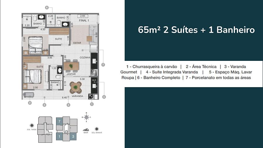 🏖️ 2 suítes | 65m² | R$ 498 mil